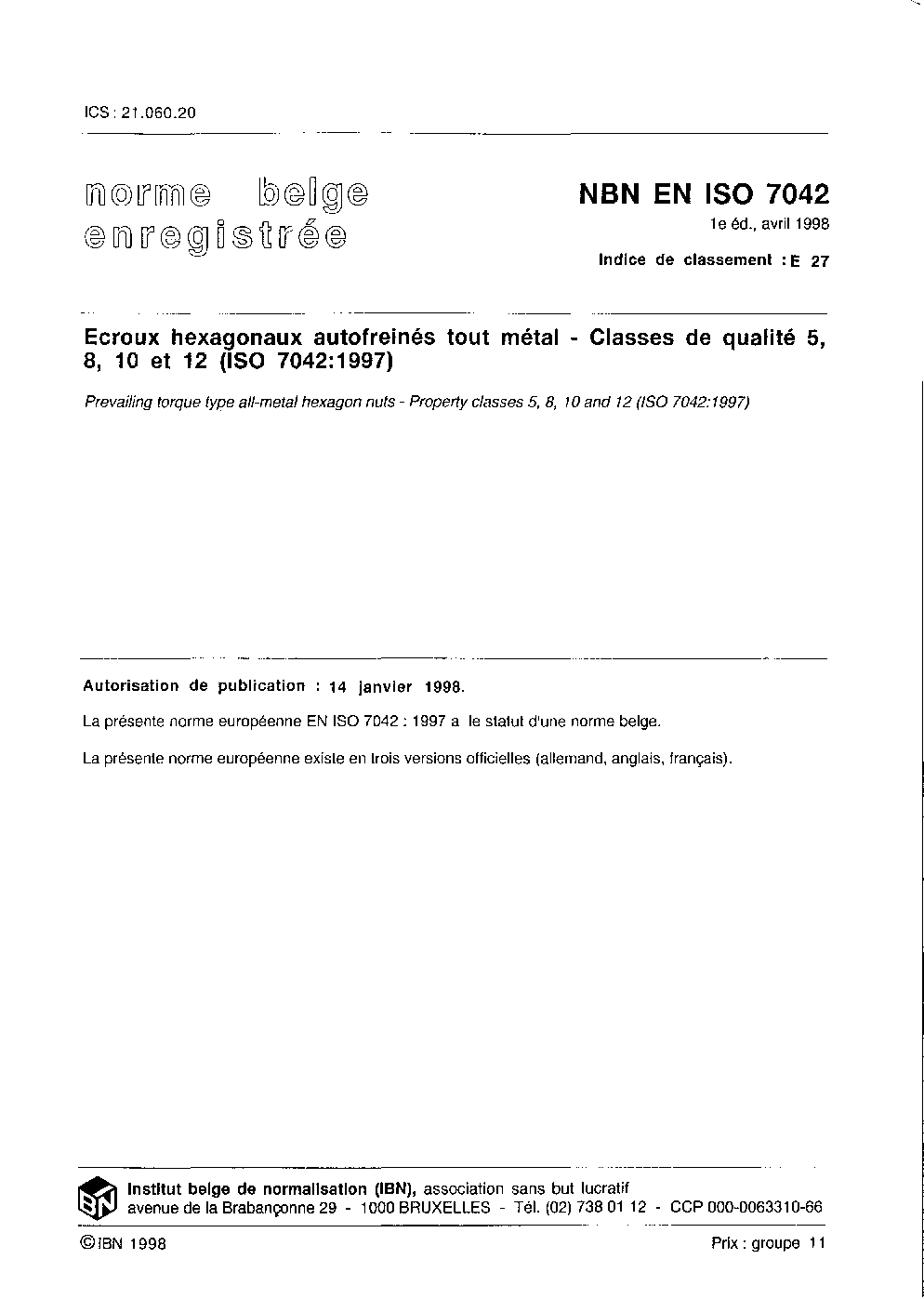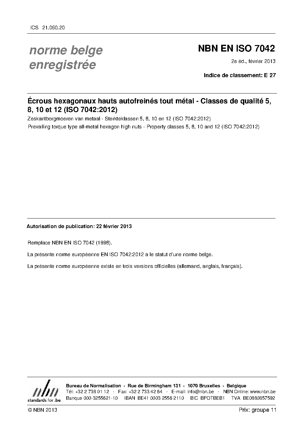 | Publisher | Bureau de Normalisation Belge (NBN) |