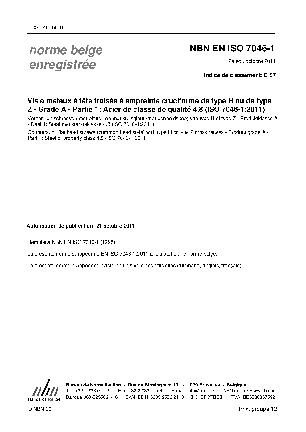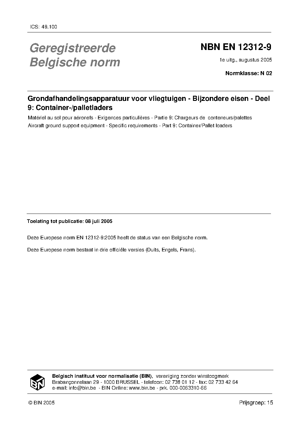 | Publisher | Bureau de Normalisation Belge (NBN) |