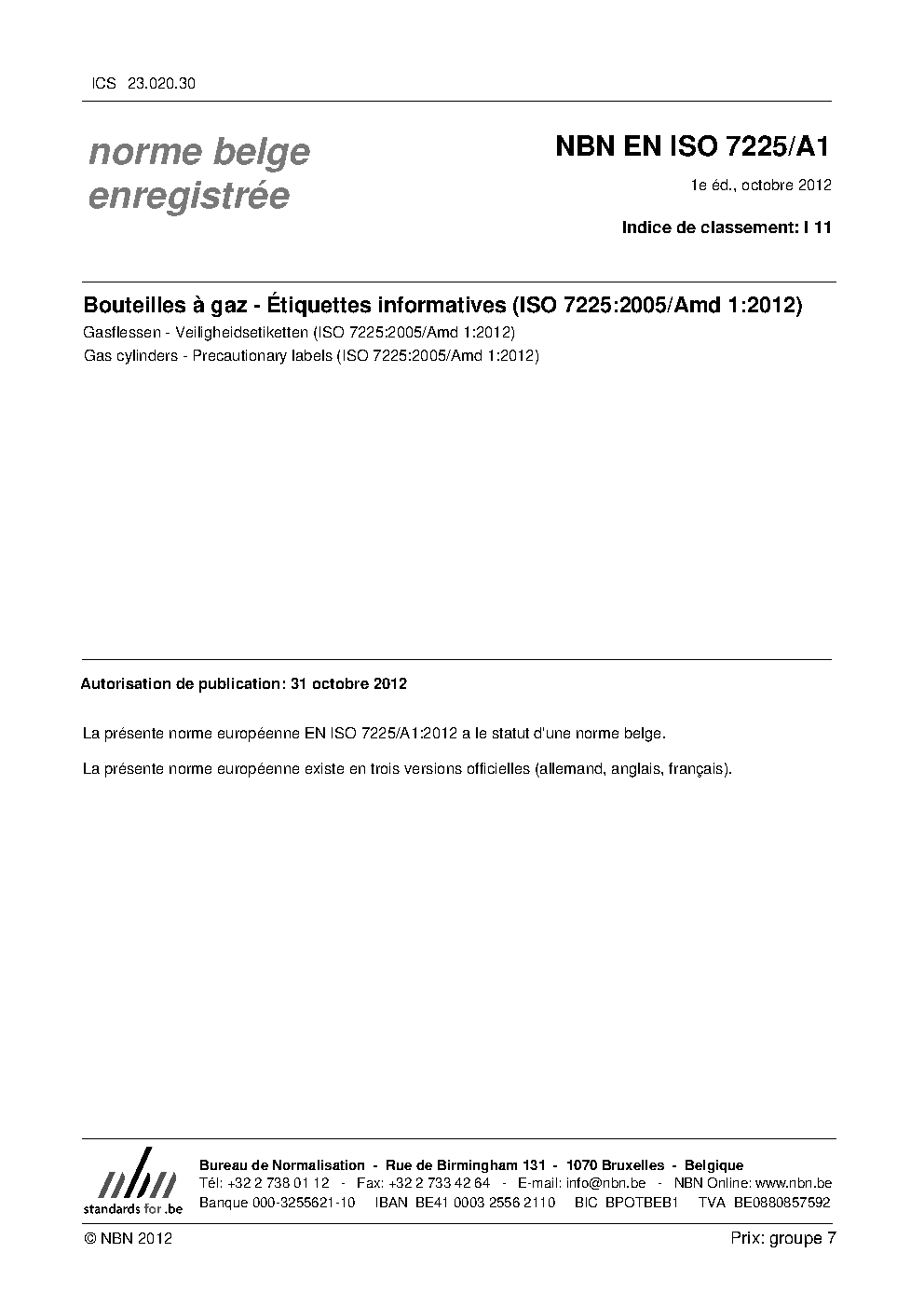 | Publisher | Bureau de Normalisation Belge (NBN) |