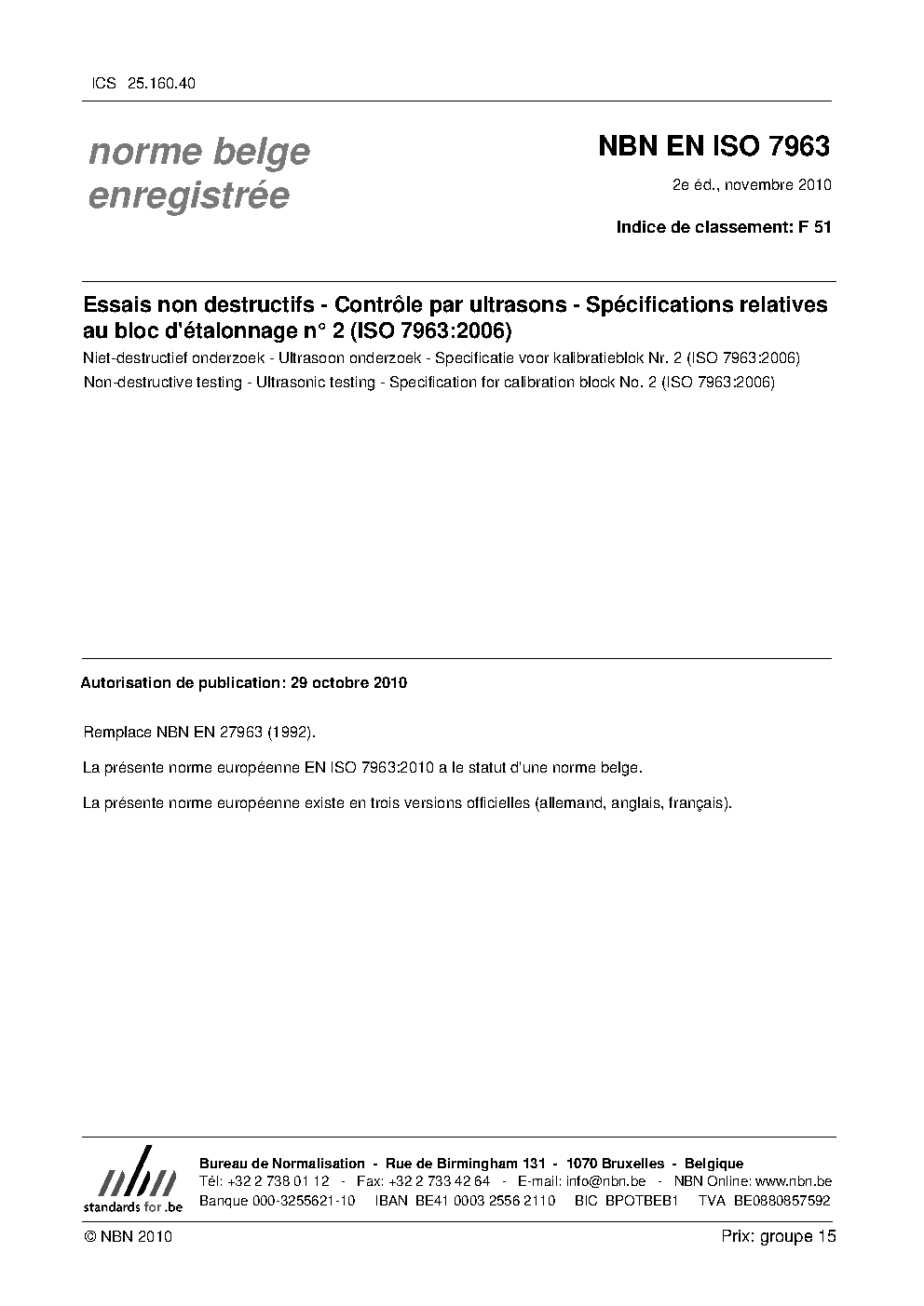 | Publisher | Bureau de Normalisation Belge (NBN) |