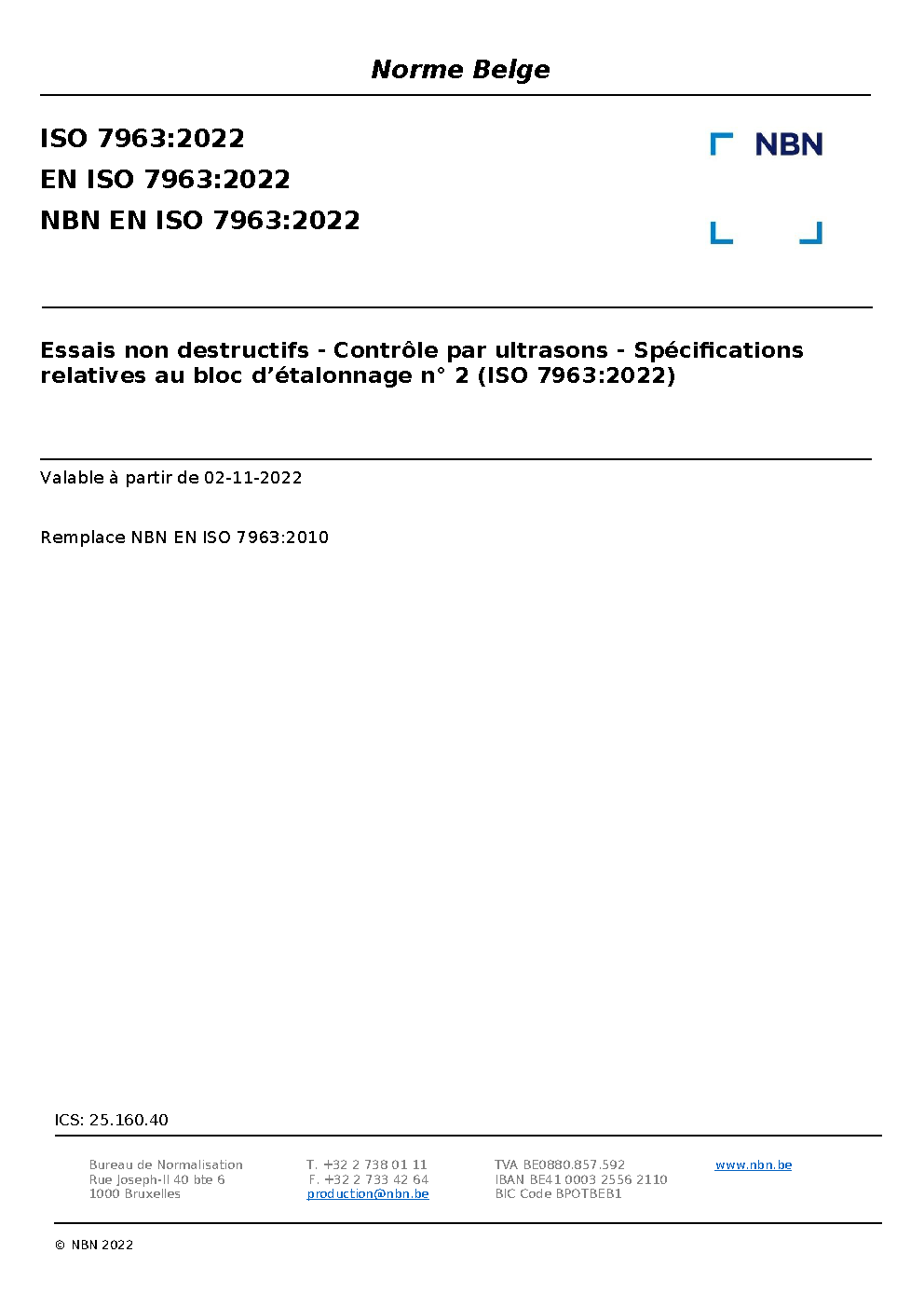 NBN EN ISO 7963:2022