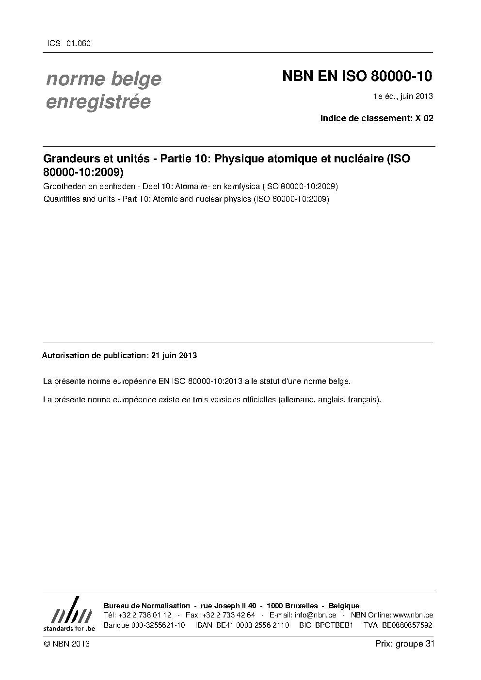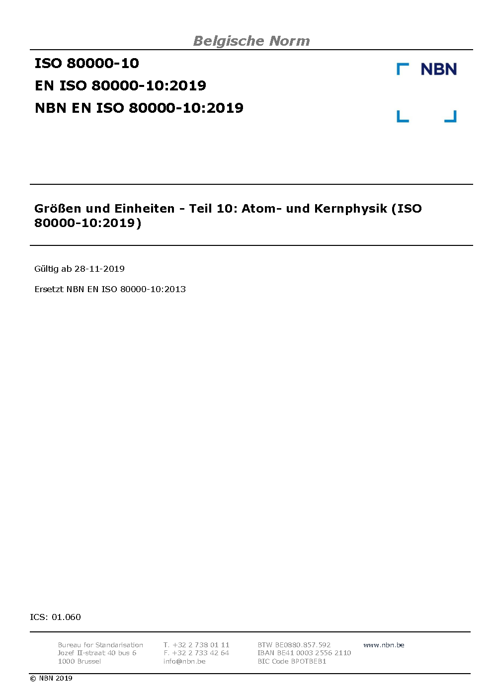 | Publisher | Bureau de Normalisation Belge (NBN) |