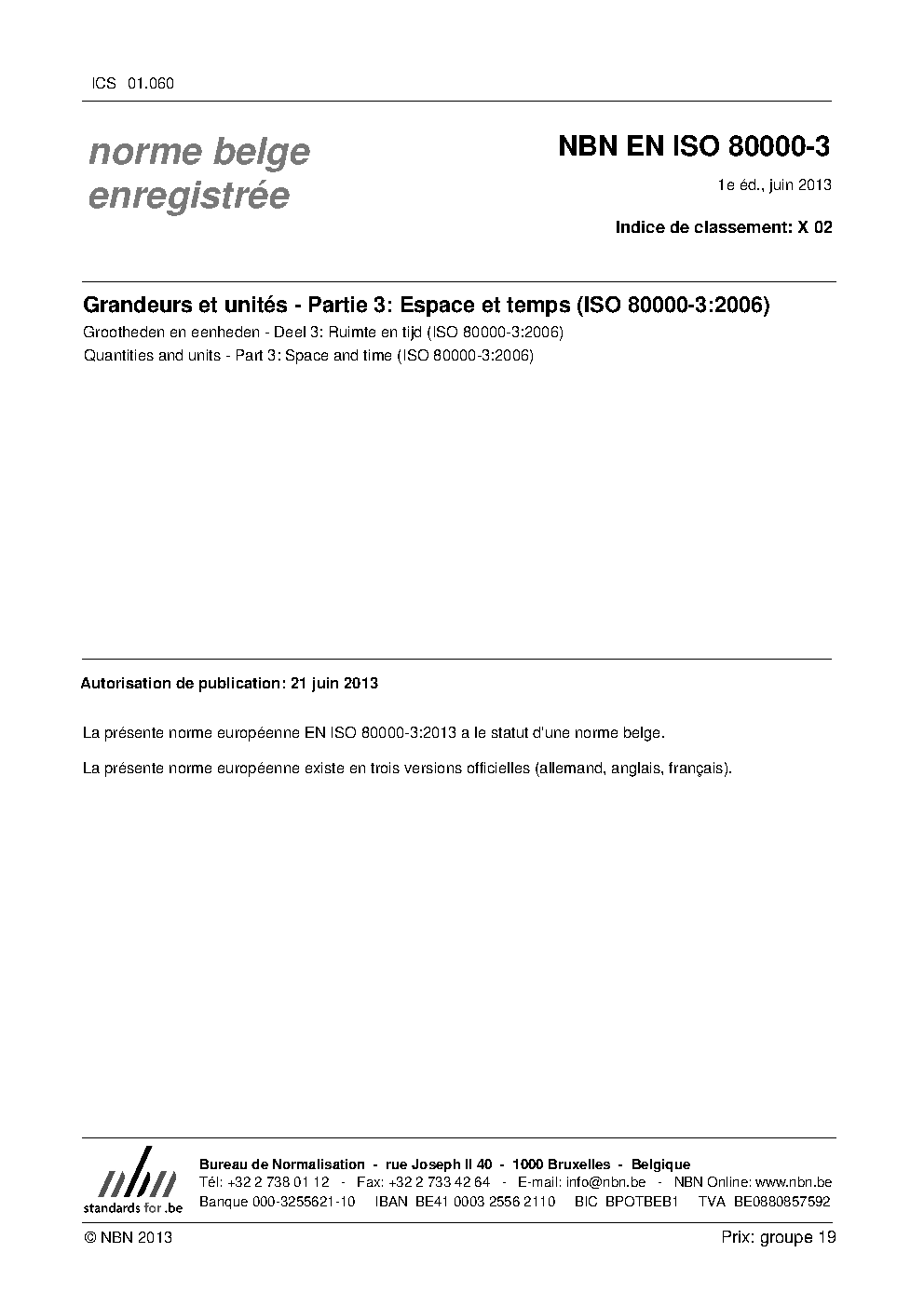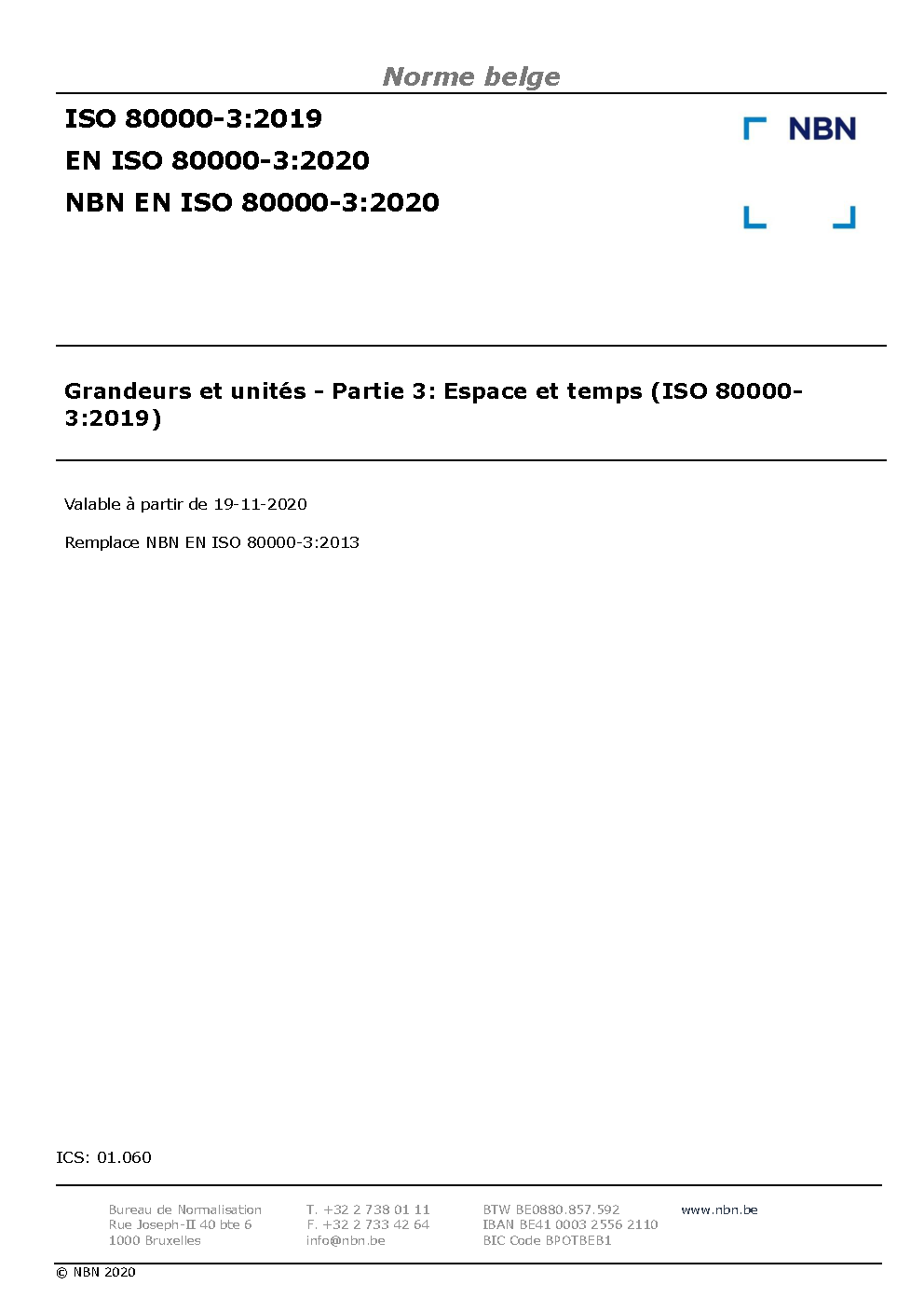 | Publisher | Bureau de Normalisation Belge (NBN) |