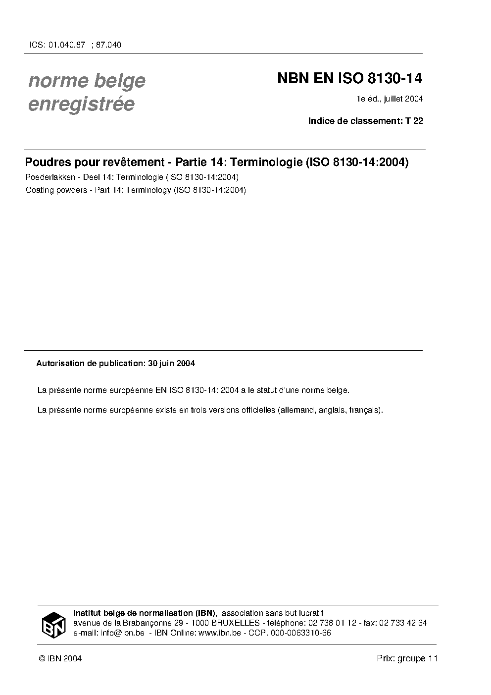 | Publisher | Bureau de Normalisation Belge (NBN) |