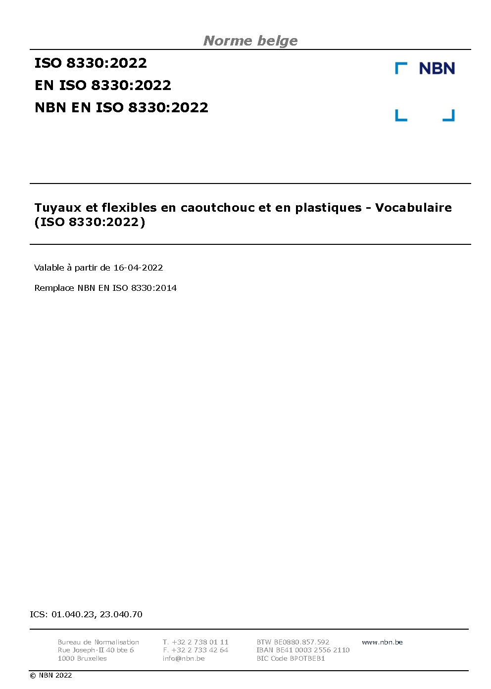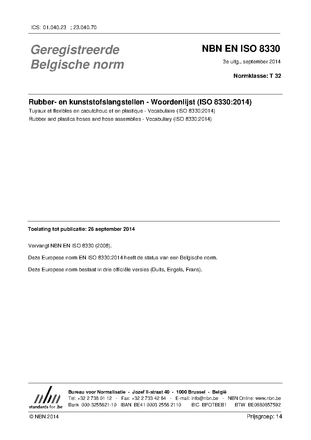 | Publisher | Bureau de Normalisation Belge (NBN) |