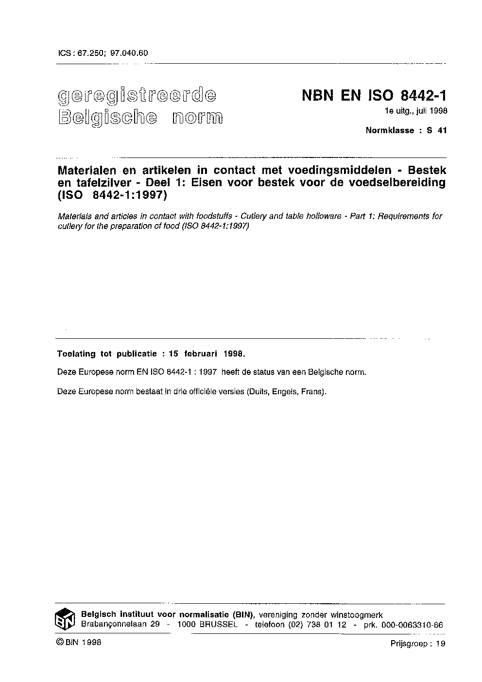 NBN EN ISO 8442-1:1998
