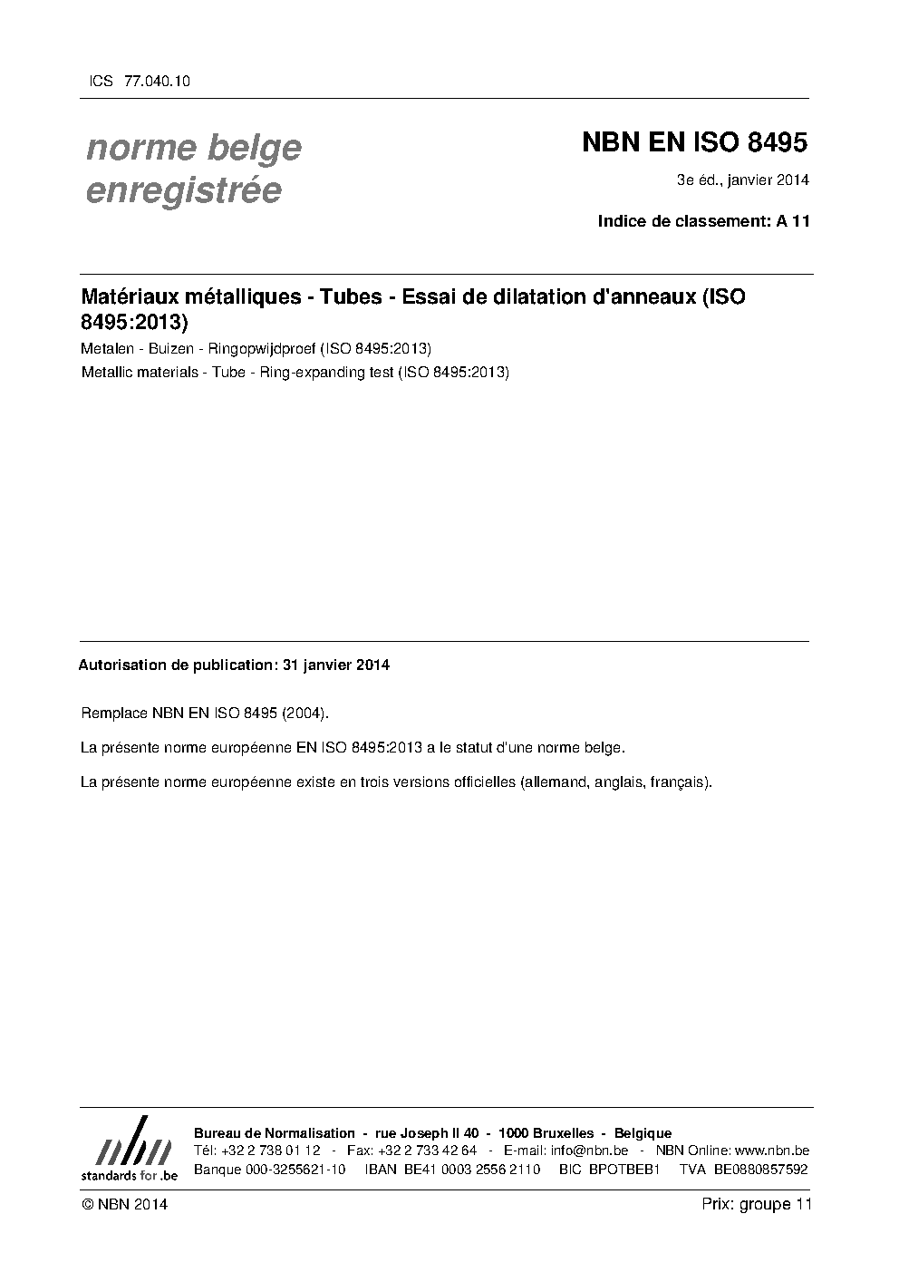 Metallic materials - Tube - Ring-expanding test (ISO 8495:2013)