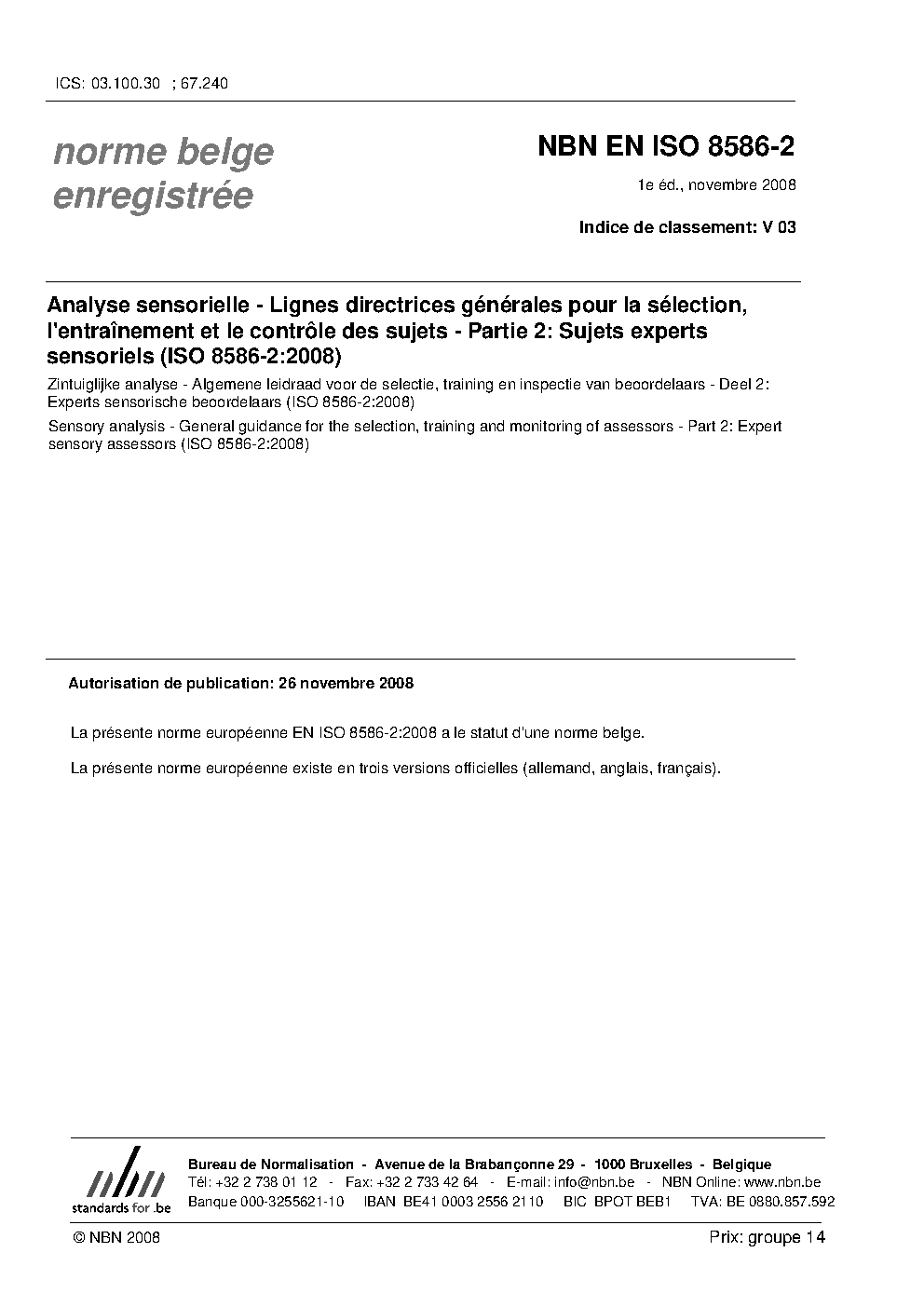| Publisher | Bureau de Normalisation Belge (NBN) |