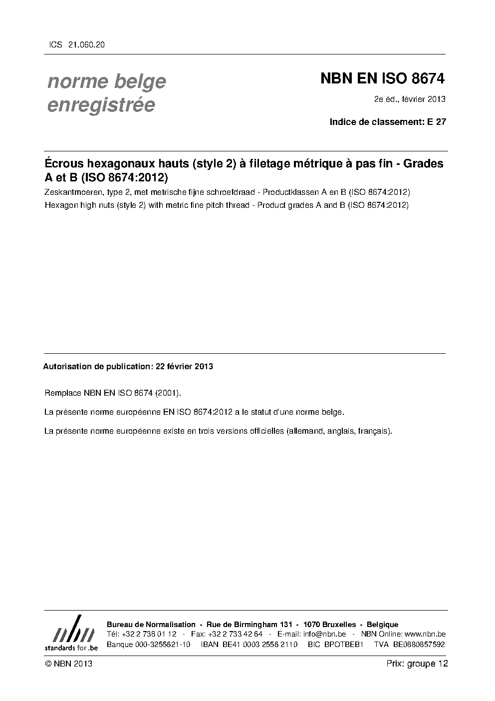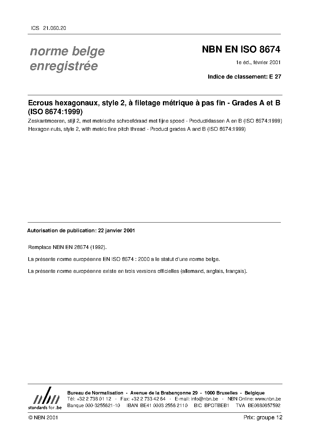| Publisher | Bureau de Normalisation Belge (NBN) |