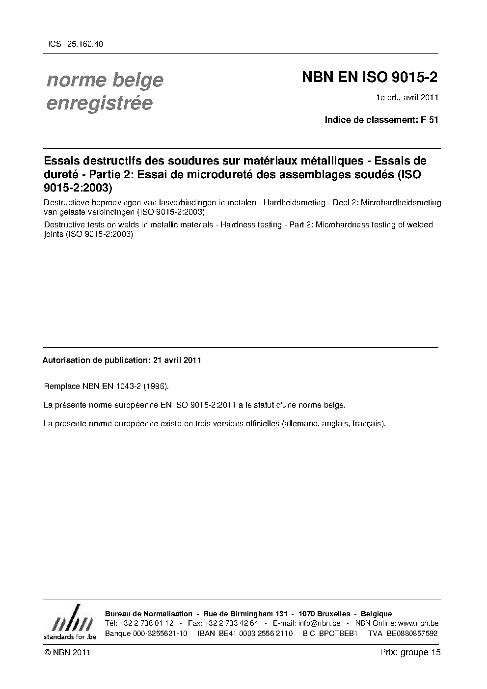 NBN EN ISO 9015-2:2011