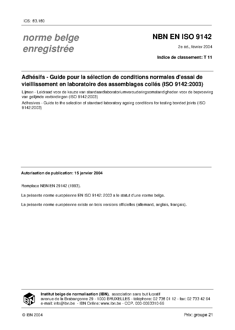 NBN EN ISO 9142:2004
