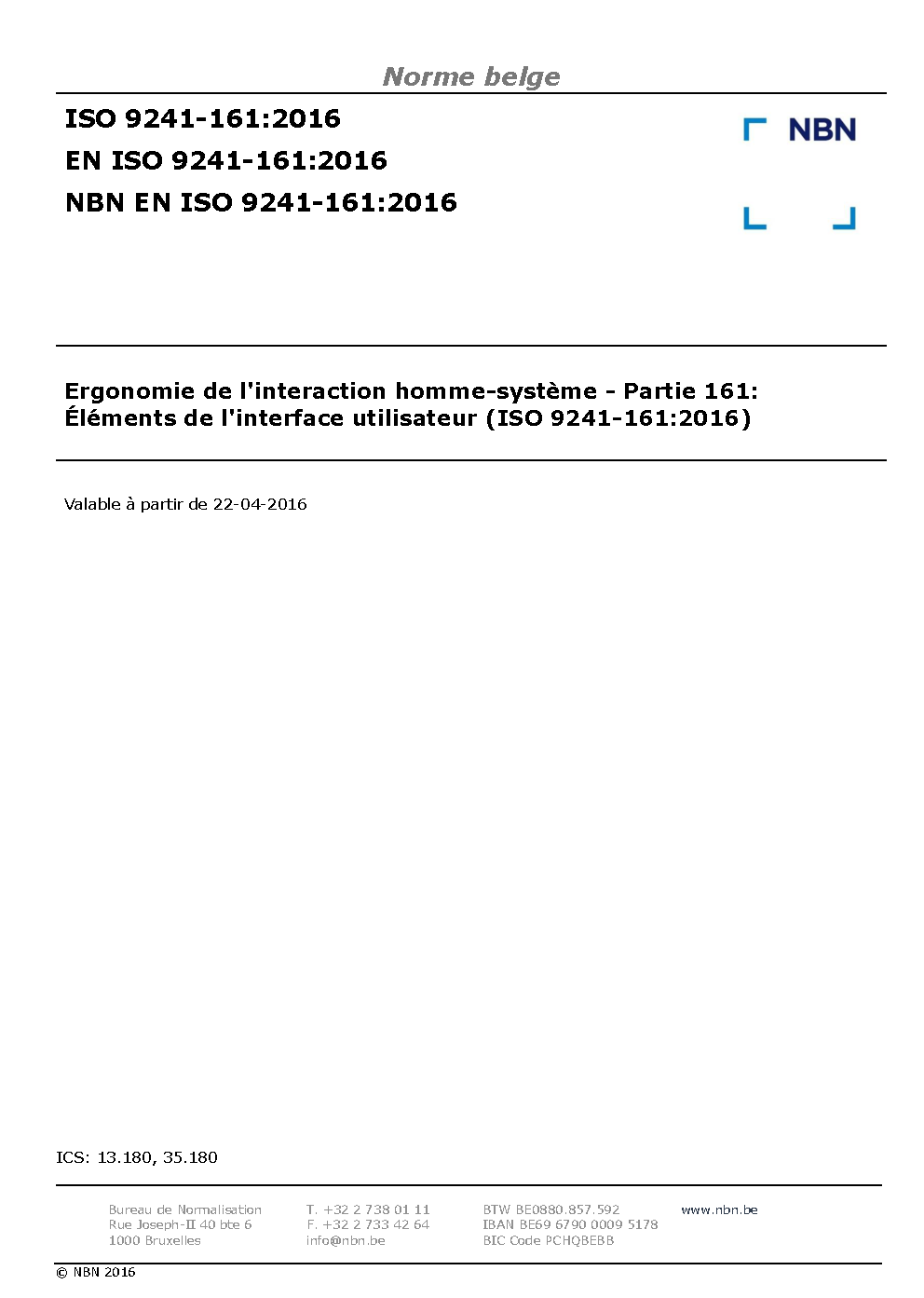 | Publisher | Bureau de Normalisation Belge (NBN) |