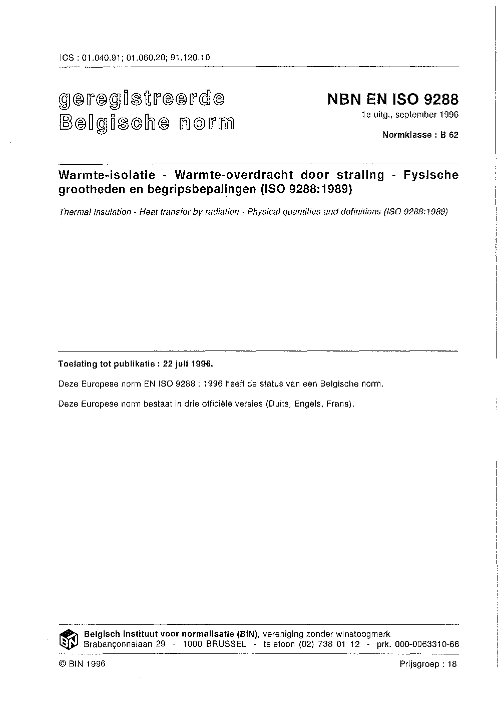 | Publisher | Bureau de Normalisation Belge (NBN) |