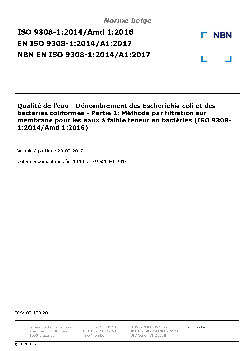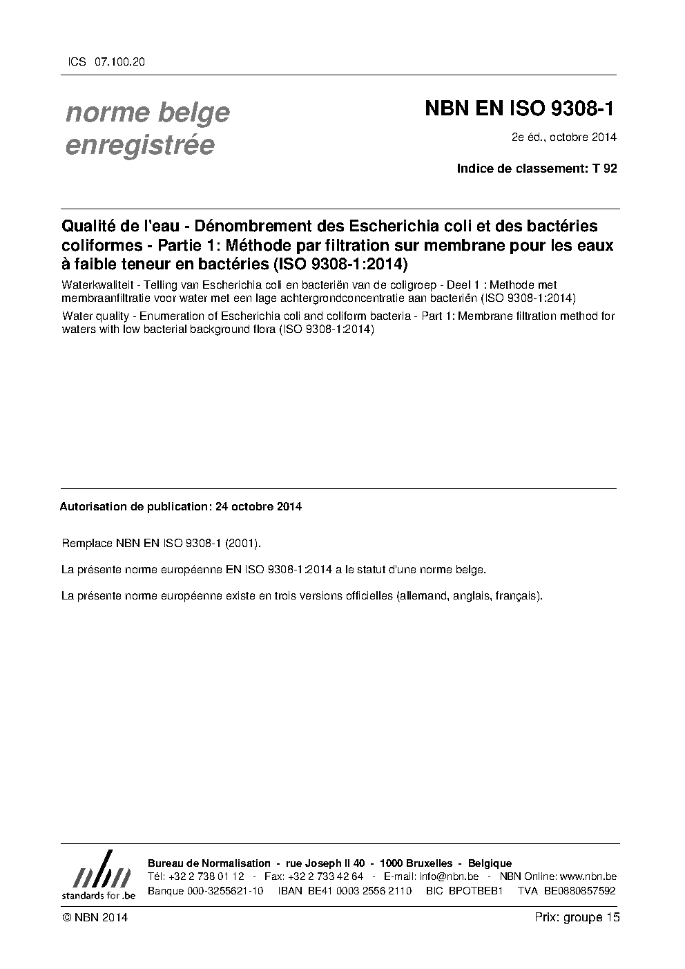 NBN EN ISO 9308-1:2014