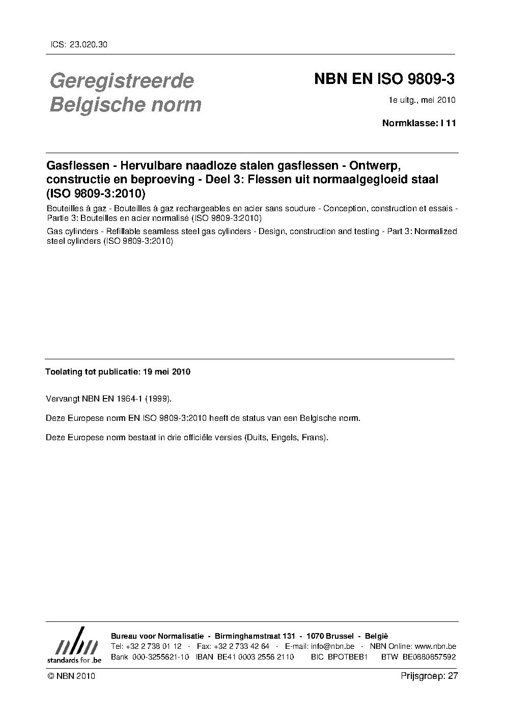 | Publisher | Bureau de Normalisation Belge (NBN) |