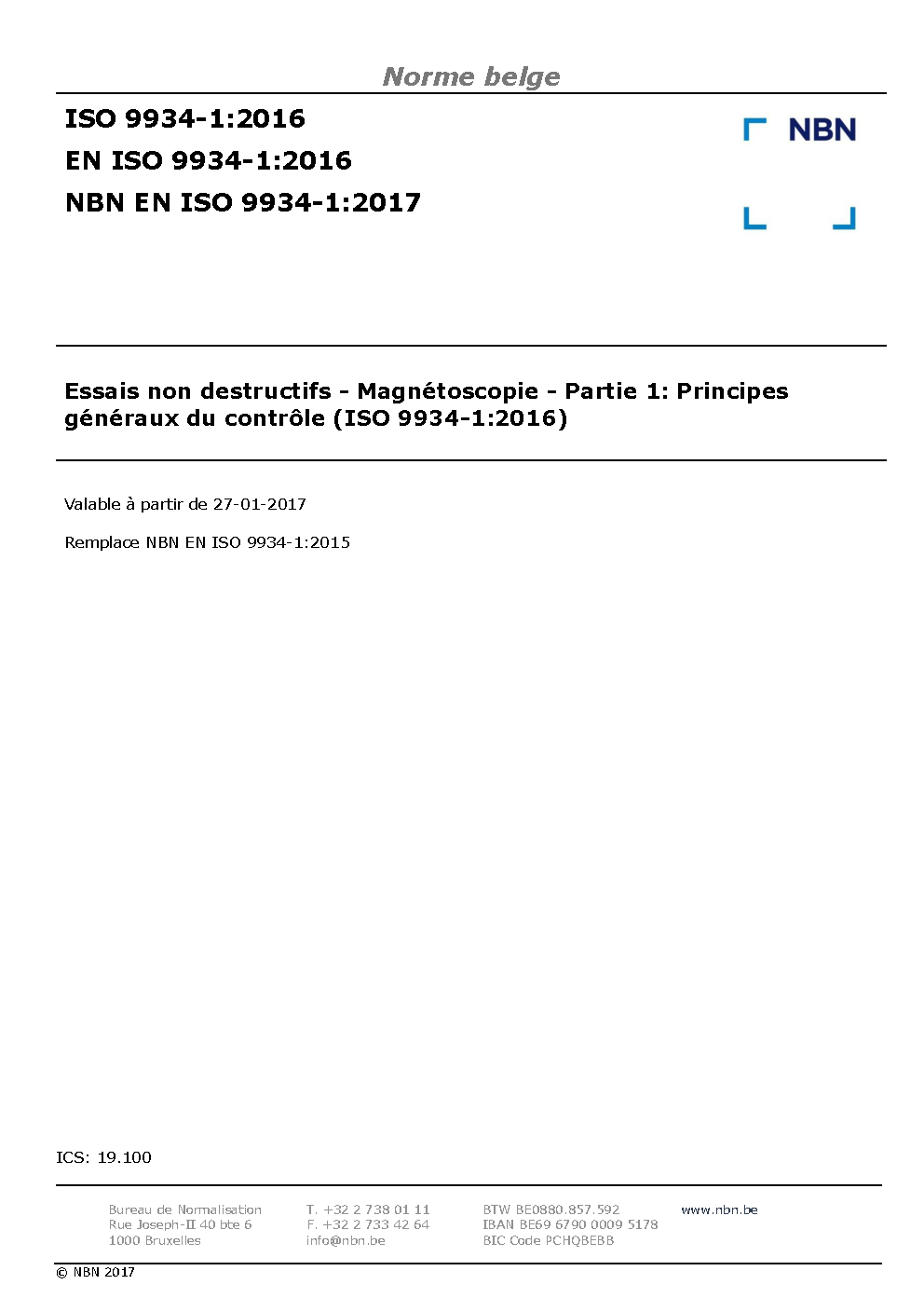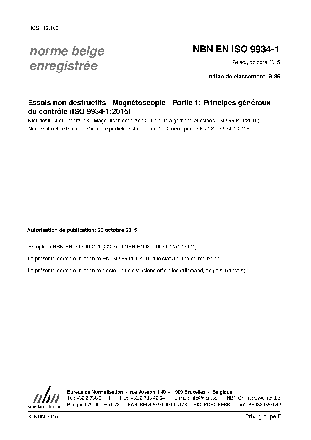 | Publisher | Bureau de Normalisation Belge (NBN) |