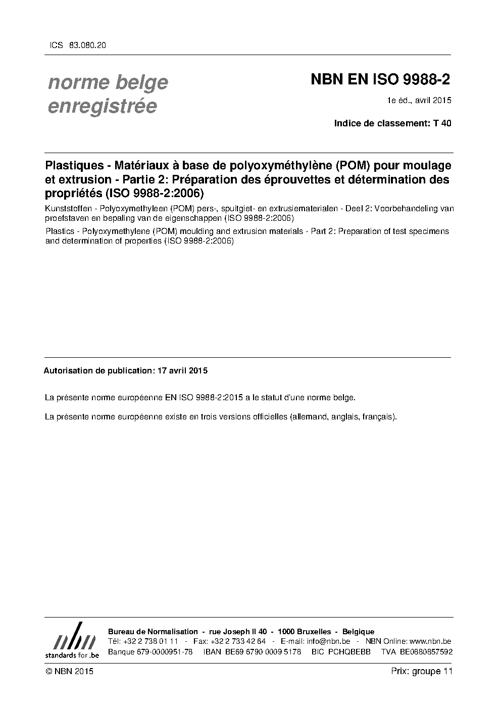 | Publisher | Bureau de Normalisation Belge (NBN) |