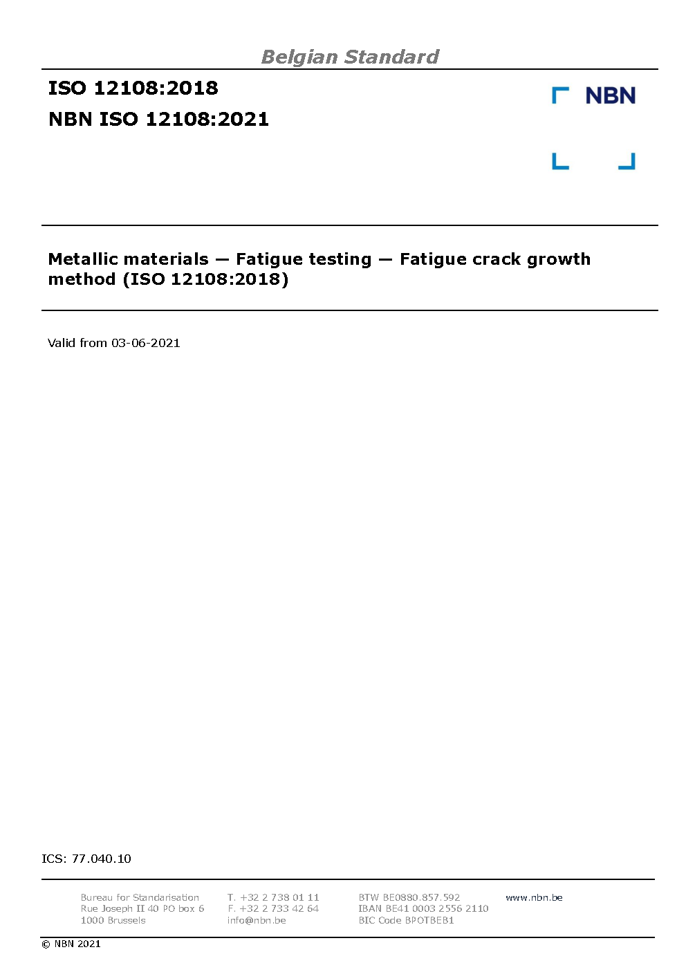 | Publisher | Bureau de Normalisation Belge (NBN) |