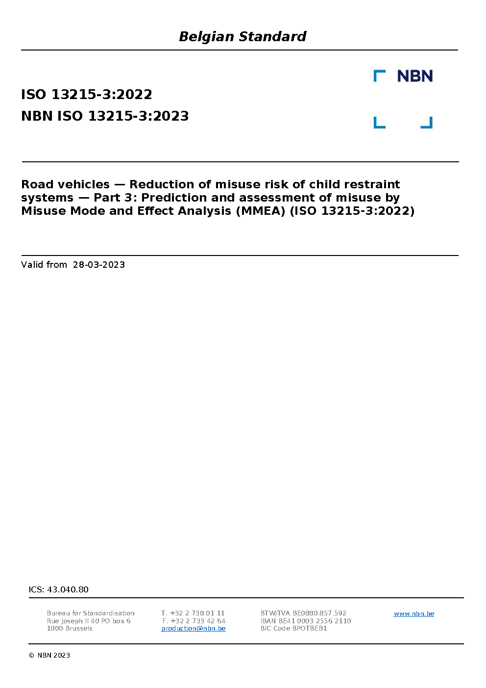 | Publisher | Bureau de Normalisation Belge (NBN) |