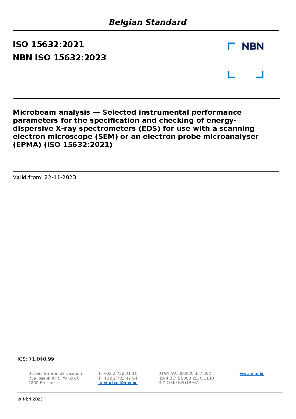 | Publisher | Bureau de Normalisation Belge (NBN) |