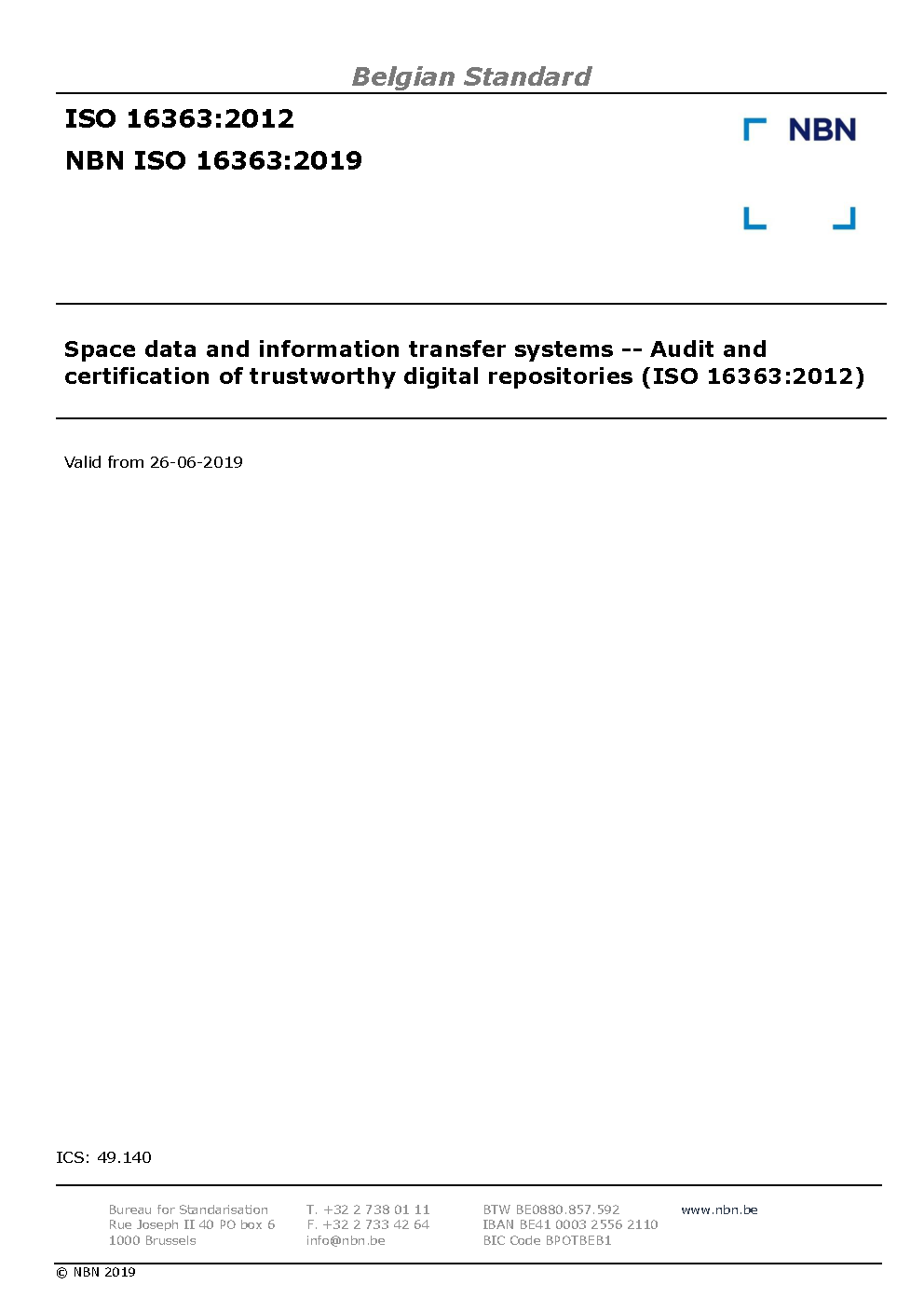 | Publisher | Bureau de Normalisation Belge (NBN) |