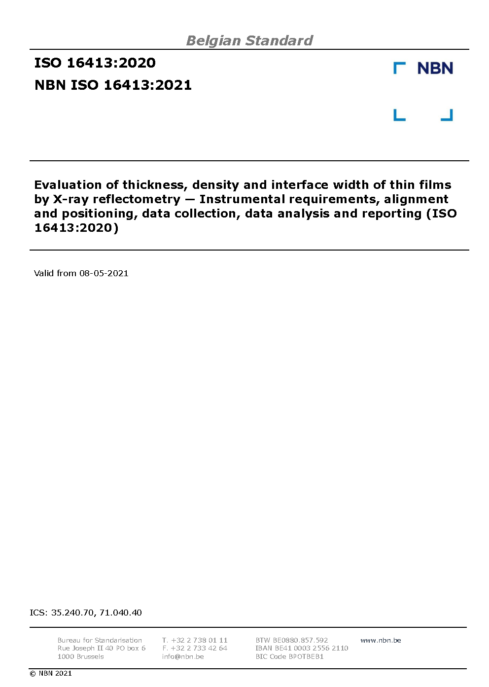 | Publisher | Bureau de Normalisation Belge (NBN) |