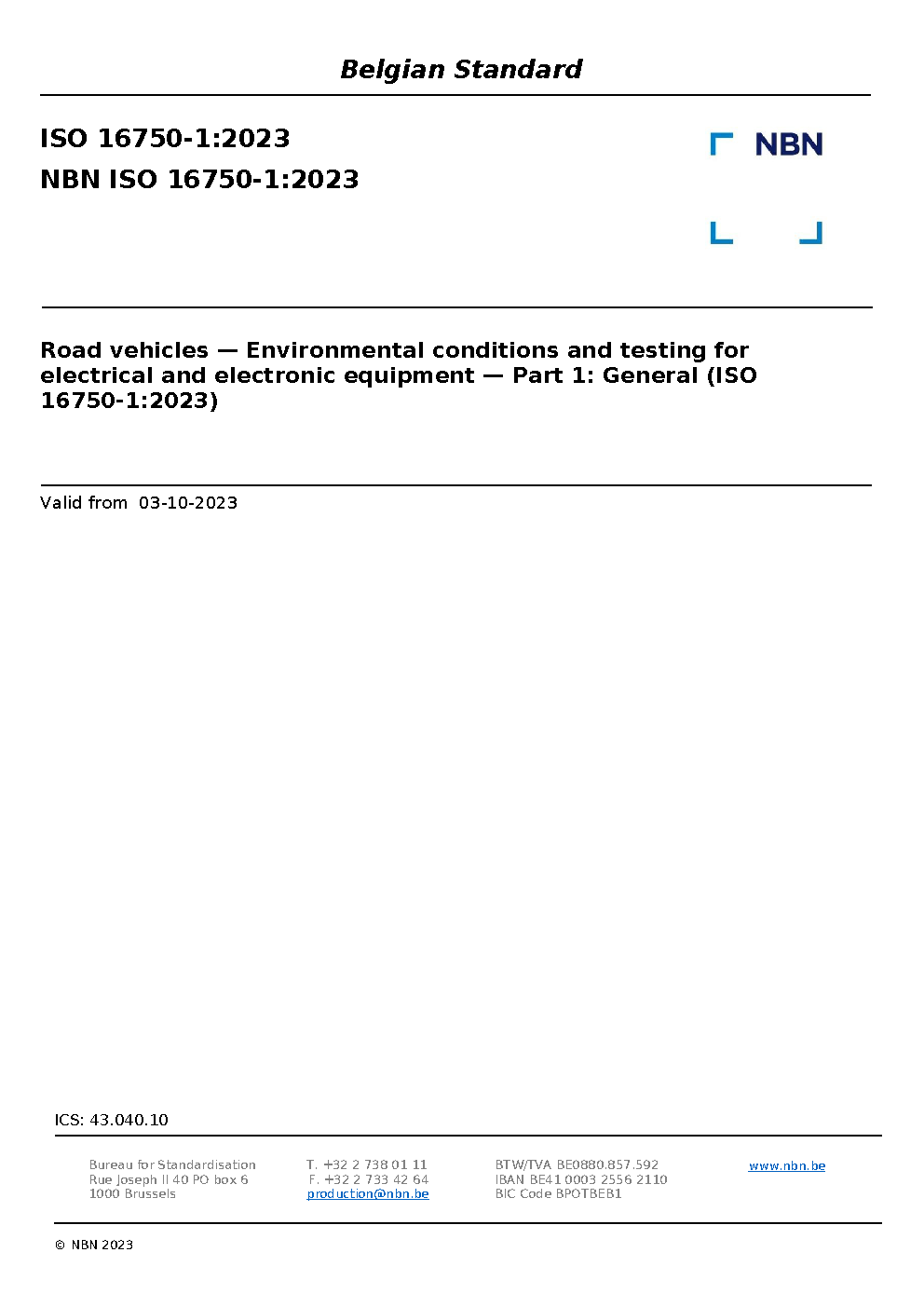 NBN ISO 16750-1:2023