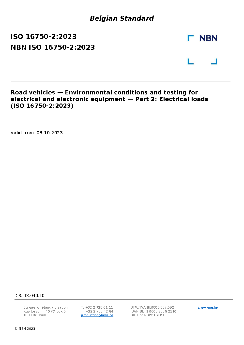 NBN ISO 16750-2:2023