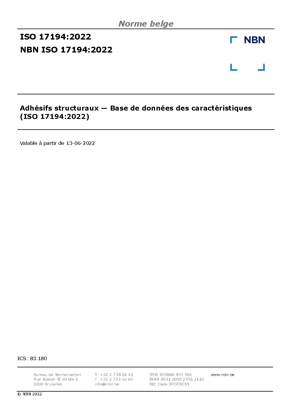 | Publisher | Bureau de Normalisation Belge (NBN) |