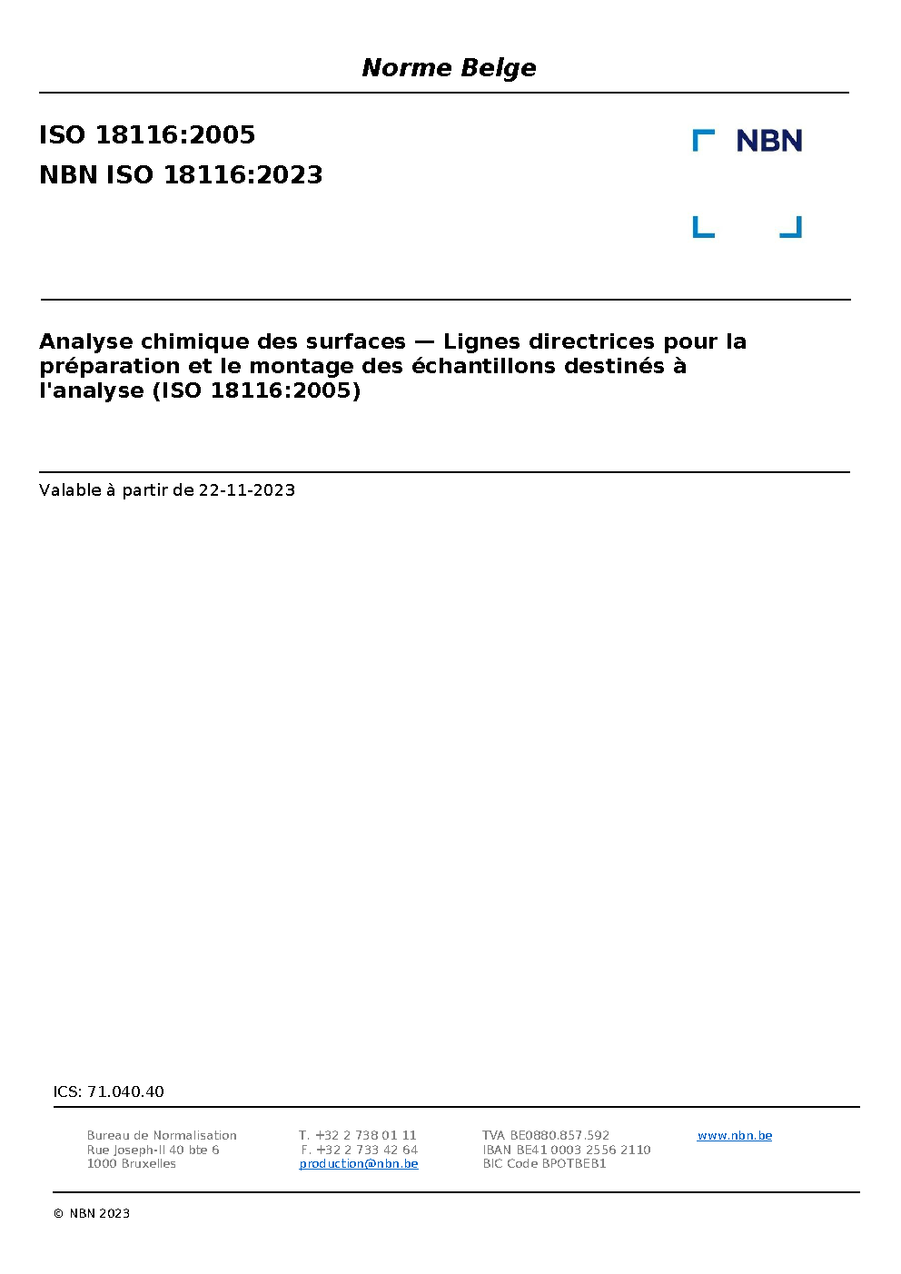 NBN ISO 18116:2023