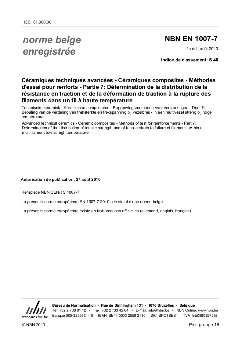 | Publisher | Bureau de Normalisation Belge (NBN) |