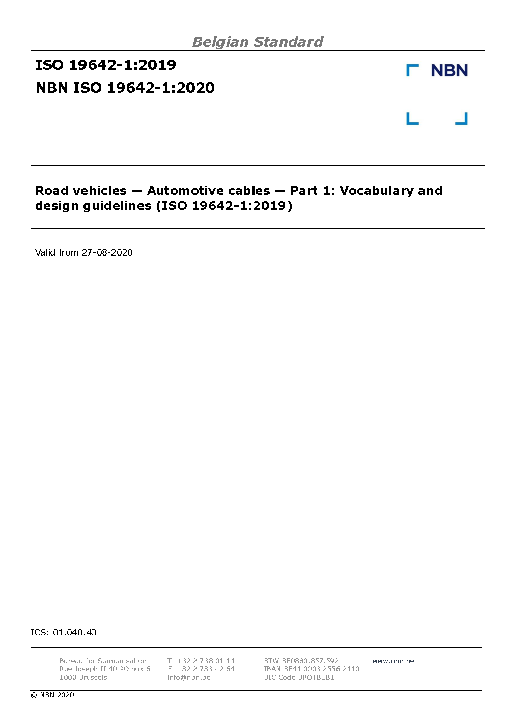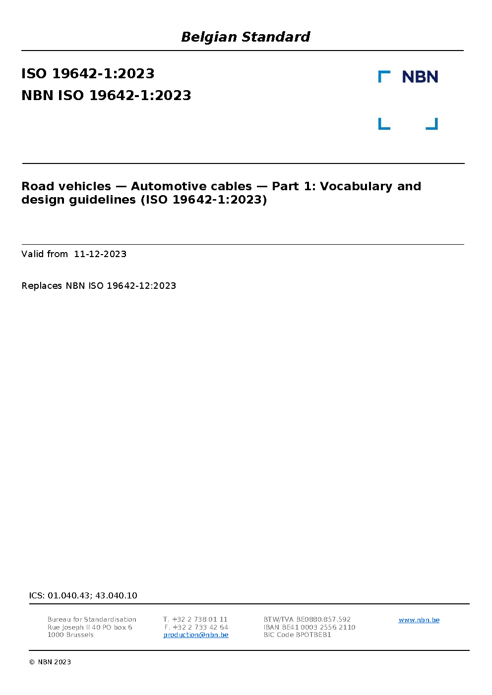 | Publisher | Bureau de Normalisation Belge (NBN) |