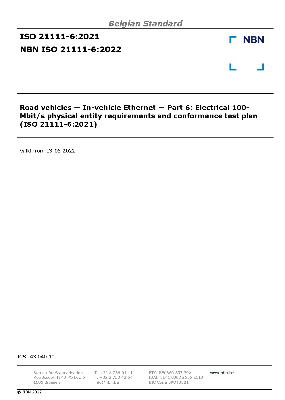 | Publisher | Bureau de Normalisation Belge (NBN) |