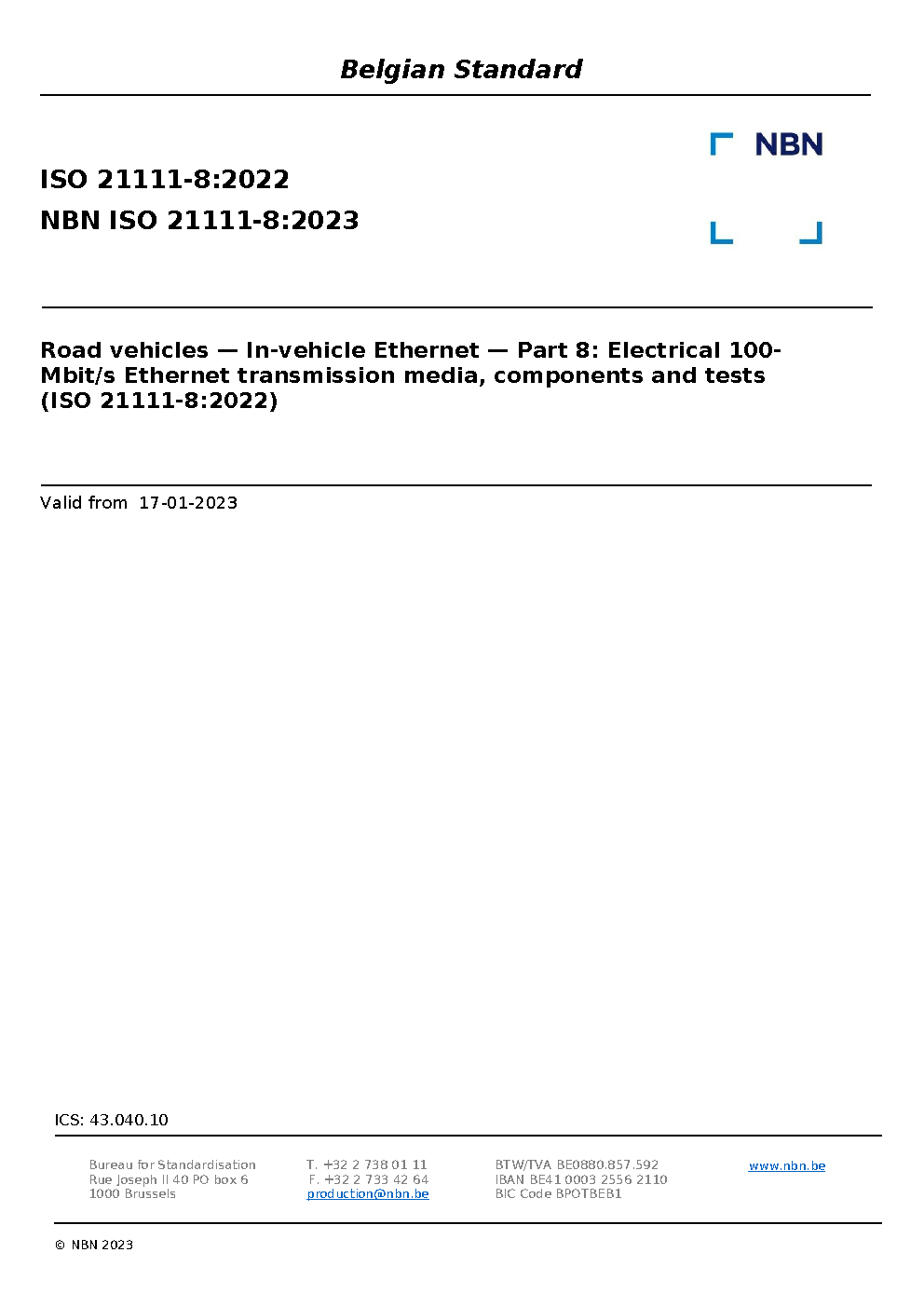 | Publisher | Bureau de Normalisation Belge (NBN) |
