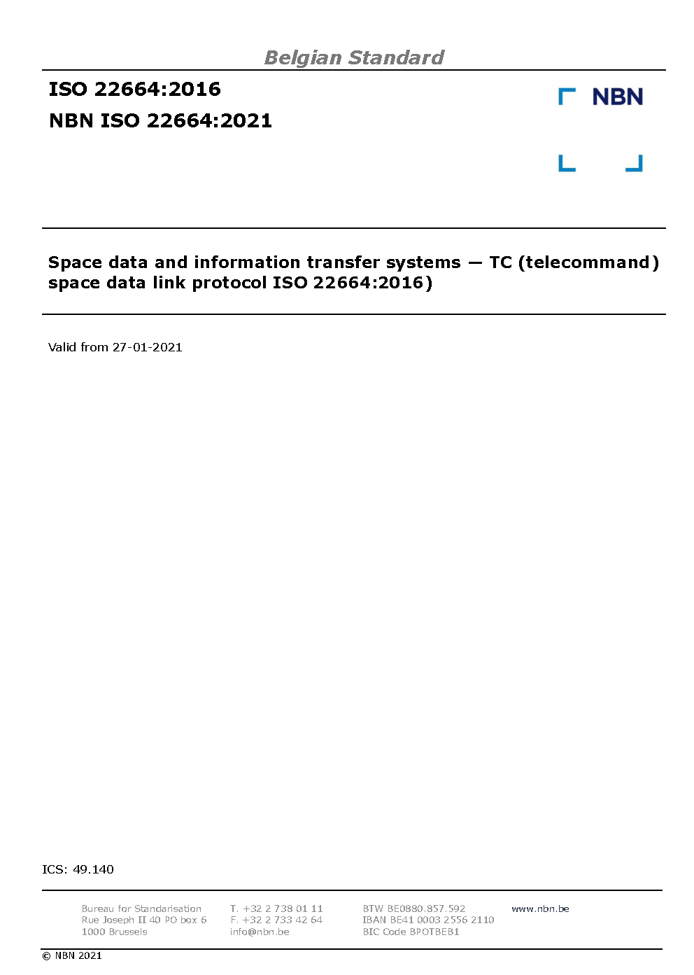 | Publisher | Bureau de Normalisation Belge (NBN) |