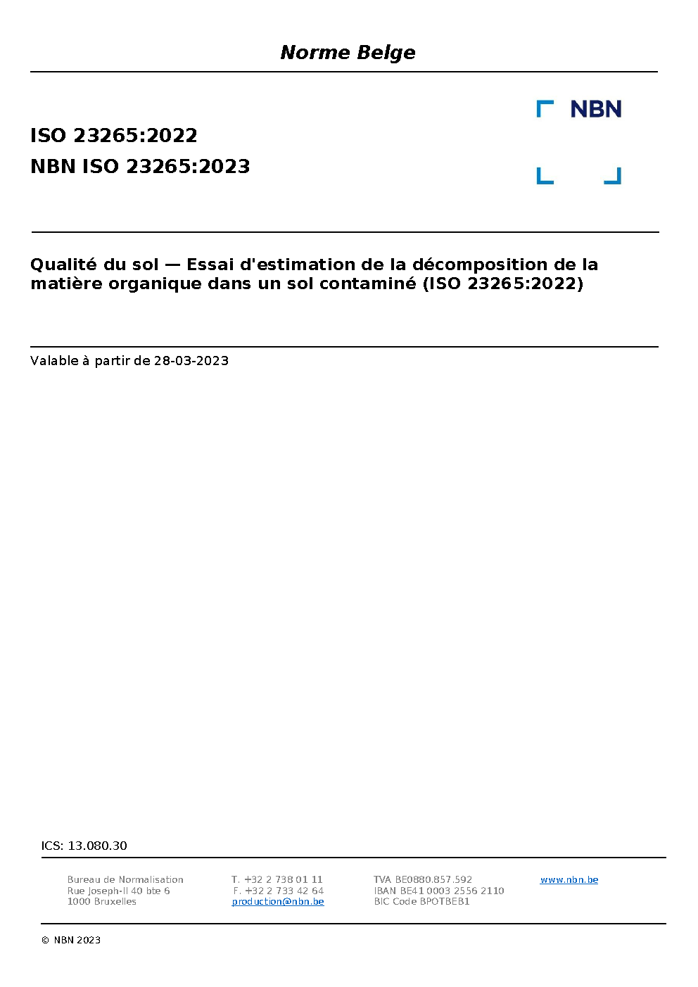 This document specifies a test procedure for the evaluation of the habitat function of soils by determining effects of soil contaminants and substances on organic matter decomposition. This test is applicable to natural soils and soil materials of unknown quality (e.g. contaminated sites, amended soils, soils after remediation, agricultural or other sites under concern). This document also specifies how to use this method for testing substances under temperate conditions.