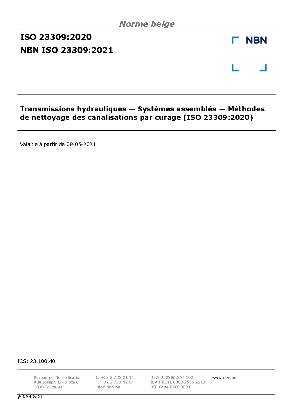 NBN ISO 23309:2021