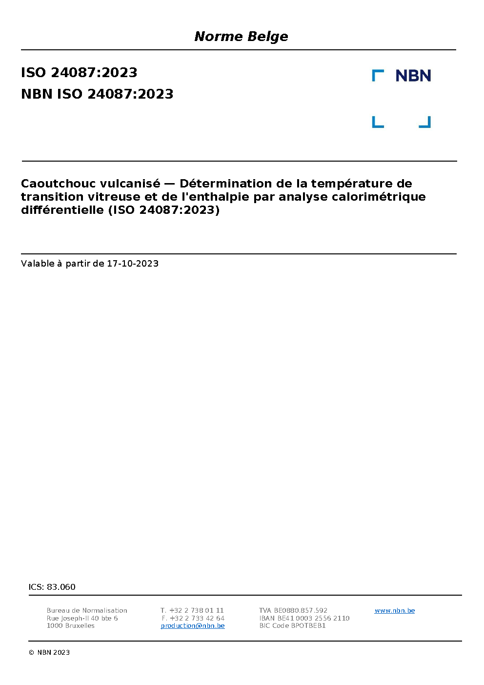 | Publisher | Bureau de Normalisation Belge (NBN) |