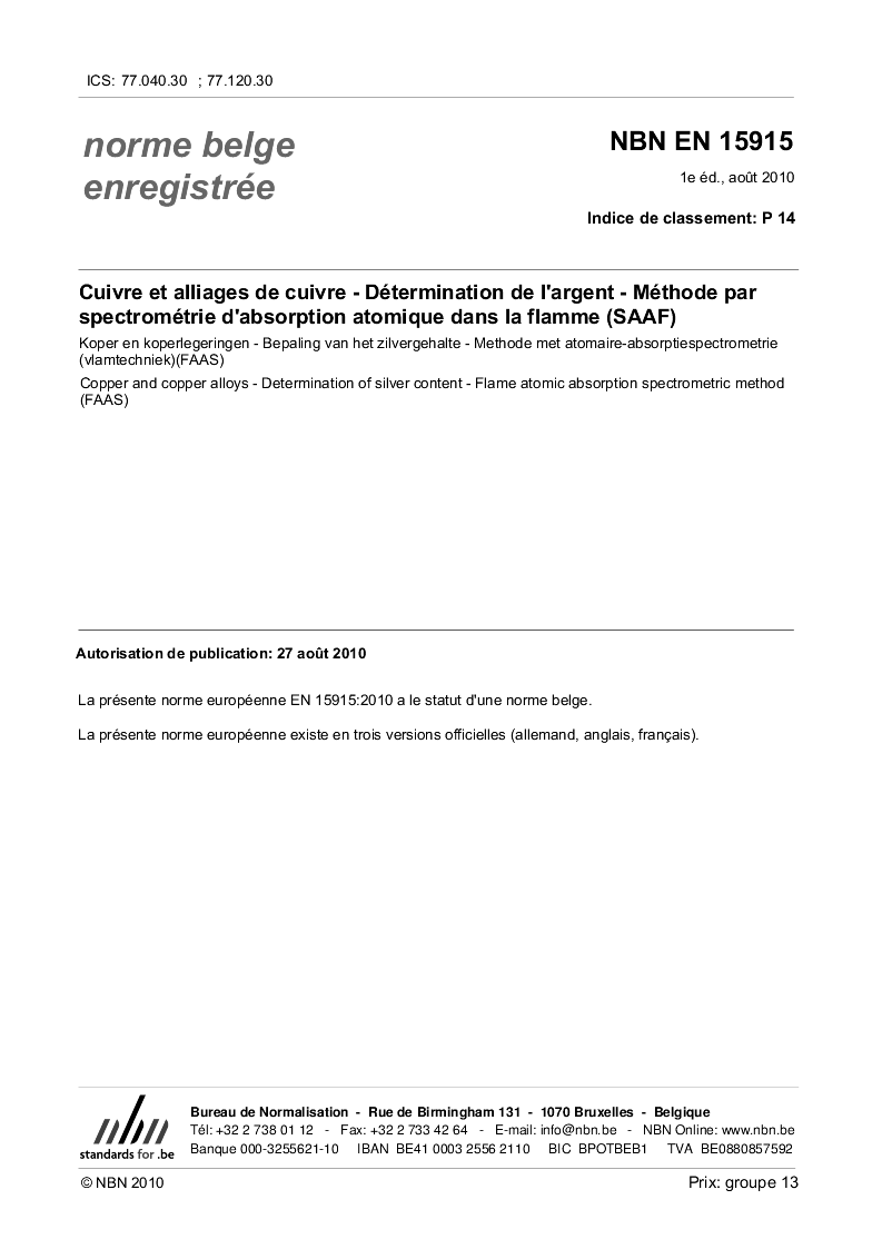 | Publisher | Bureau de Normalisation Belge (NBN) |