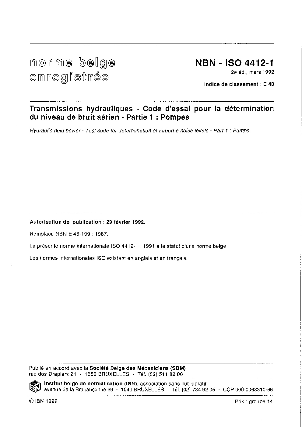 NBN ISO 4412-1:1992