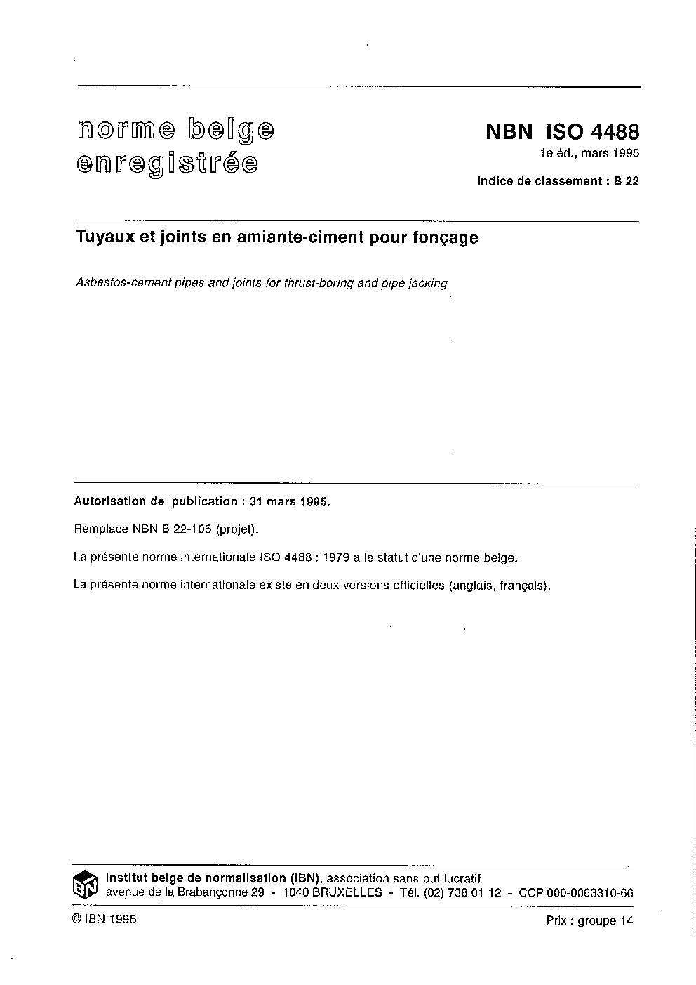 | Publisher | Bureau de Normalisation Belge (NBN) |