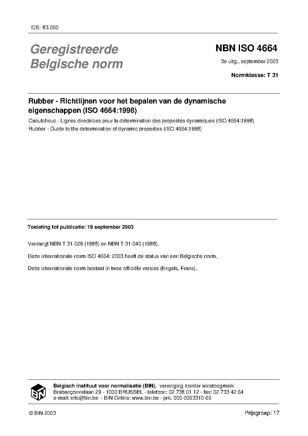 NBN ISO 4664:2003