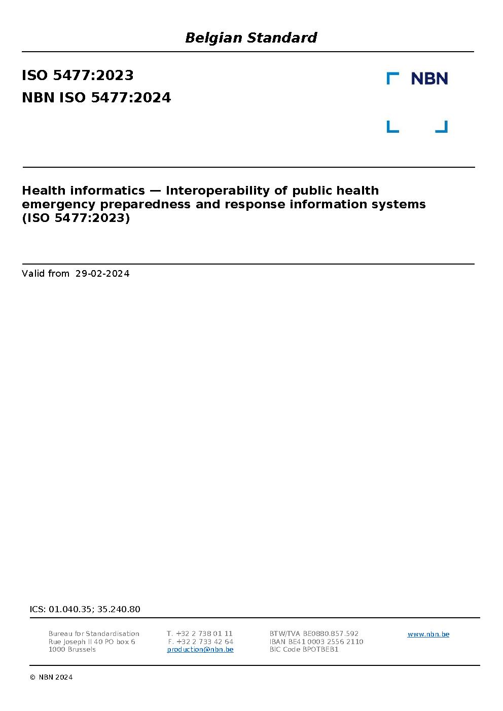 | Publisher | Bureau de Normalisation Belge (NBN) |