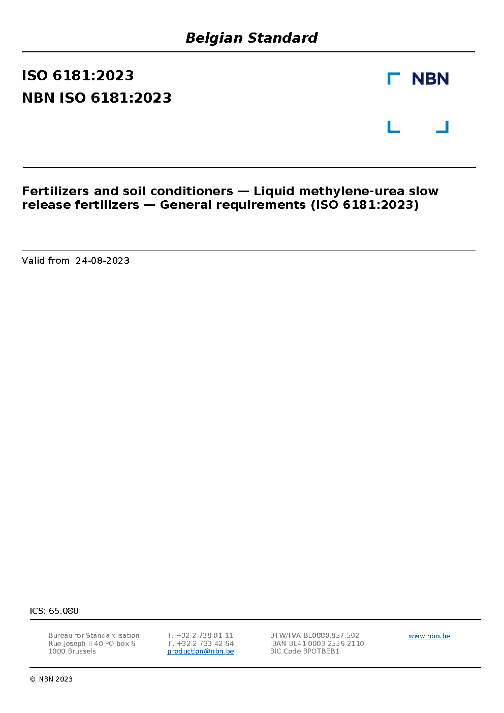 | Publisher | Bureau de Normalisation Belge (NBN) |