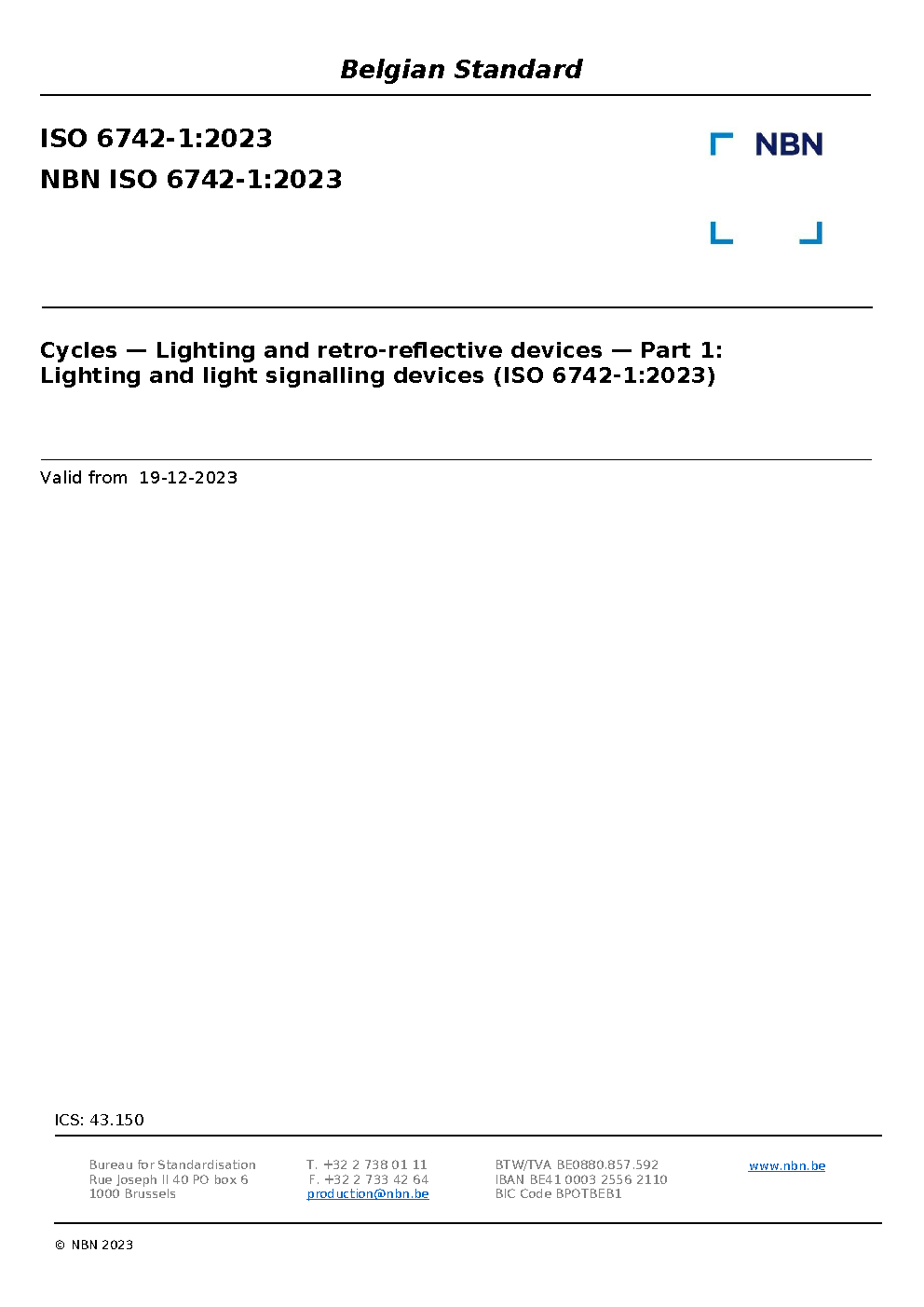 This document is applicable to lighting devices used on cycles intended to be used on public roads and, especially, bicycles complying with ISO 4210[1] and ISO 8098[2].