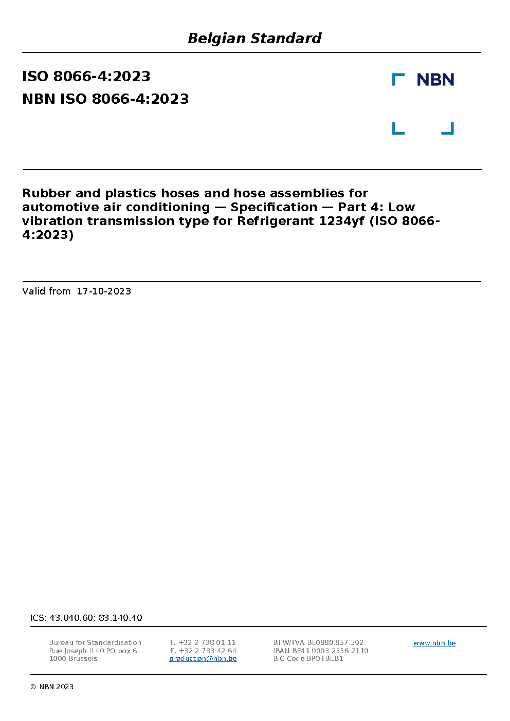 | Publisher | Bureau de Normalisation Belge (NBN) |