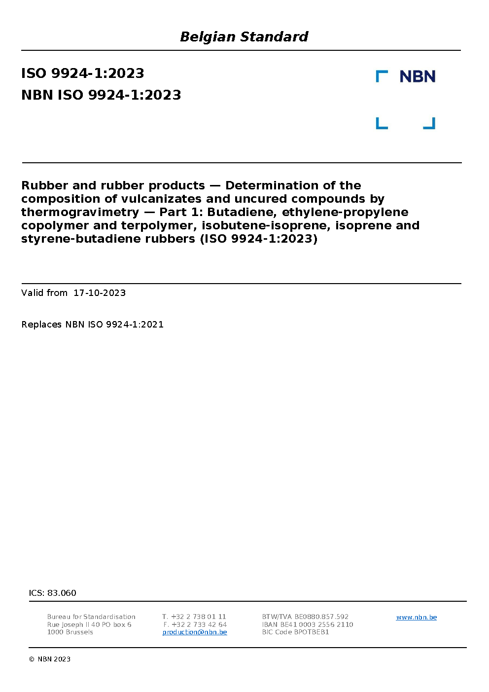 | Publisher | Bureau de Normalisation Belge (NBN) |