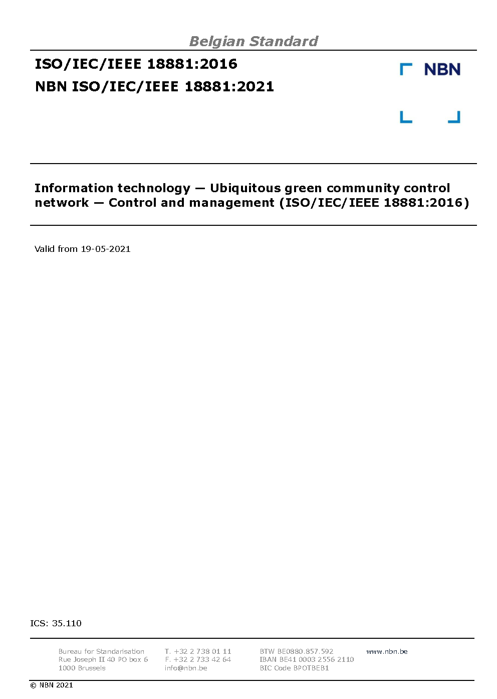 | Publisher | Bureau de Normalisation Belge (NBN) |