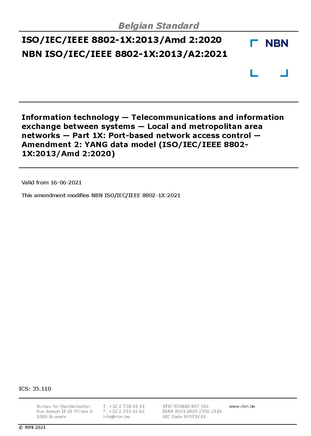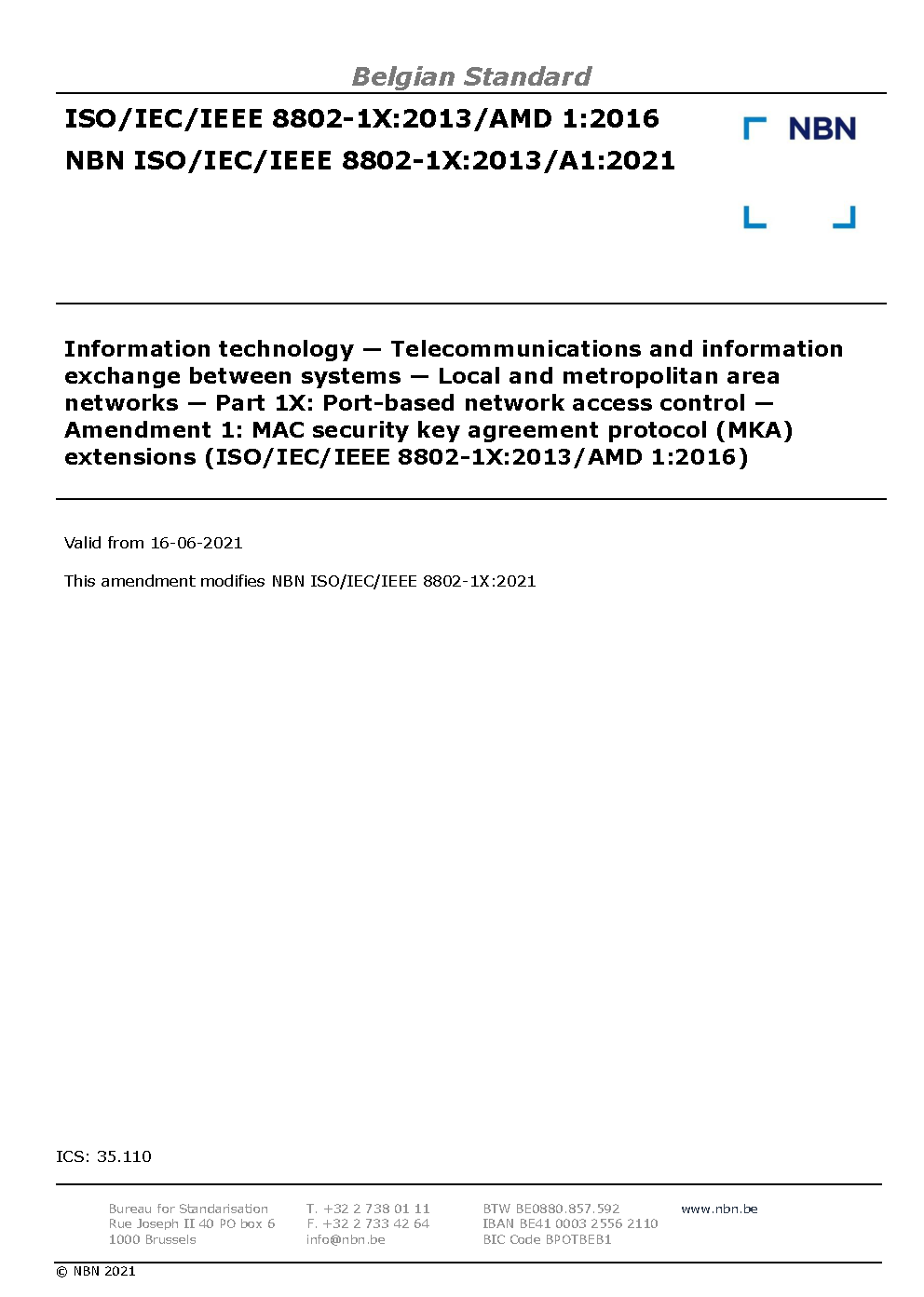 | Publisher | Bureau de Normalisation Belge (NBN) |
