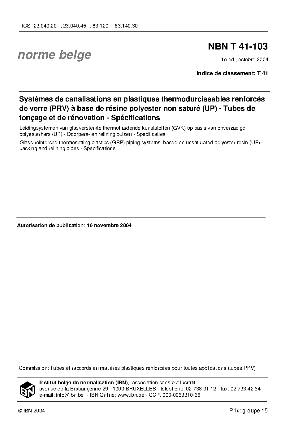 | Publisher | Bureau de Normalisation Belge (NBN) |